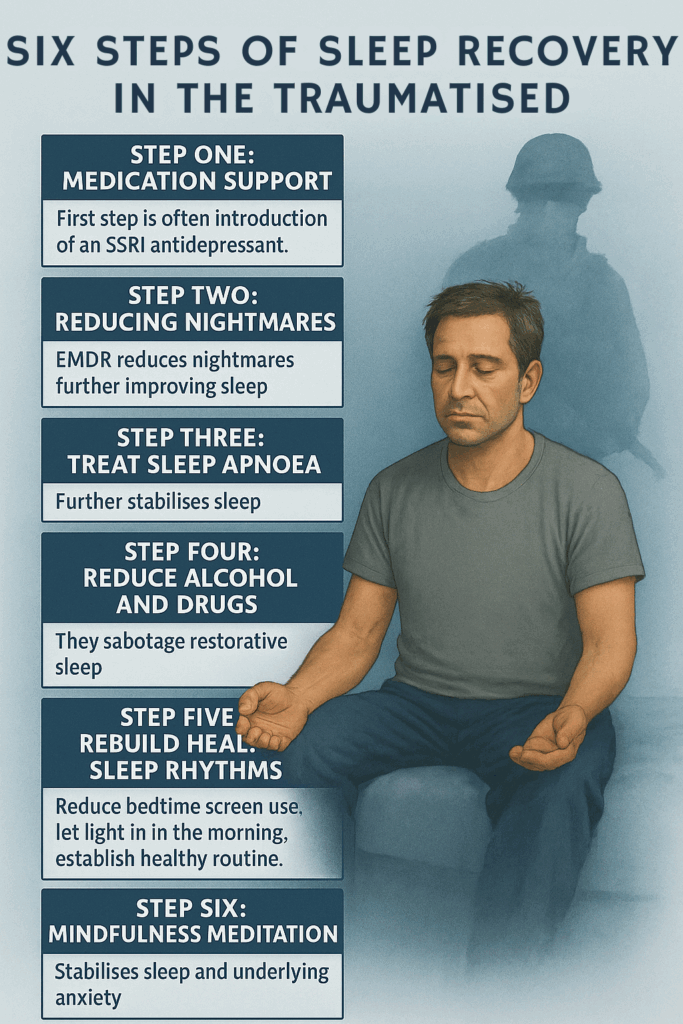 After many years working with trauma survivors, I have noticed a consistent pattern in how sleep recovers. It usually unfolds in six steps.