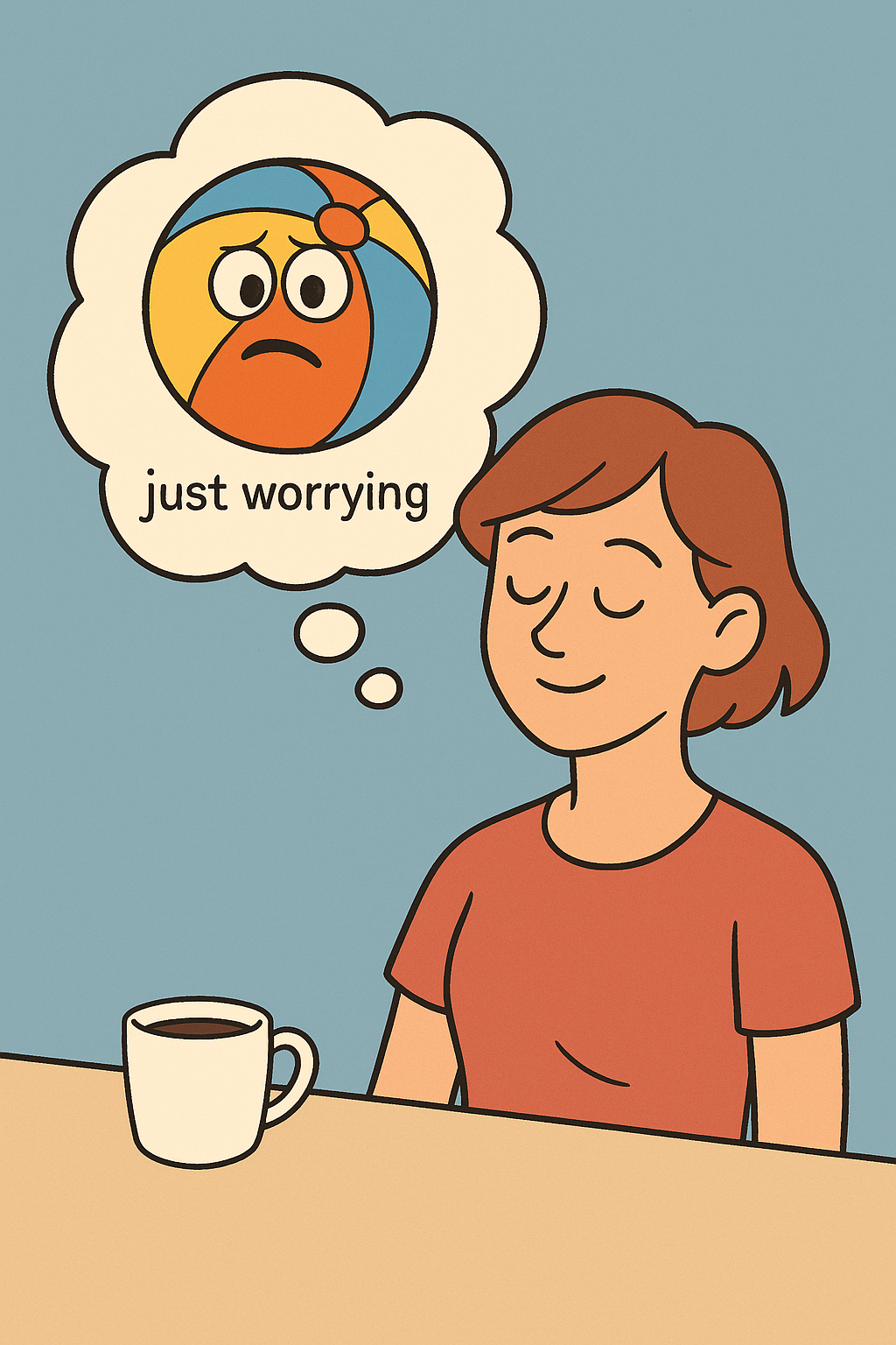Worry, on the other hand, is you circling the ball endlessly. You’re not going anywhere, but you’re getting more tired and more tense. Trying to push it away only takes more energy—and it comes straight back at you. More splashing, more squeaking, and zero progress.